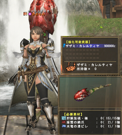 防御力:478 火耐性:2 水耐性:16 雷耐性:2 氷耐性:-4 龍耐性:8