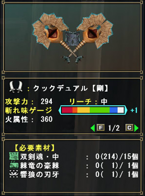 で、蒼クックやってたらほしくなった装備を手持ちで組みたいな~と思って
