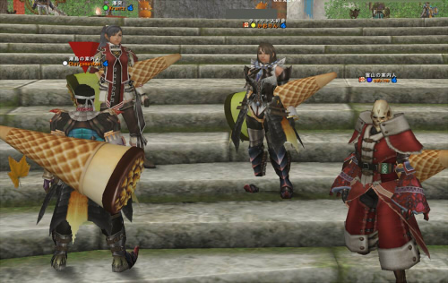 カフ: 耐震カフSA1 ● 武: ○ ○ ○ 頭:ヴォルアポカリプス Lv7 98 剛力珠 剛力珠 剛力珠 胴:絶影ノ羽織・魁 Lv7 123 剛力珠 剛力珠 剛力珠 腕:ハーヴェストアーム Lv7 99 剛力珠 剛力珠 腰:ルコFXウイング Lv7 173 斬空珠G 強精珠G 強精珠G 脚:ベルFXグリーヴ Lv7 180 強精珠G 覚醒珠G 防御力:674 火耐性:10 水耐性:4 雷耐性:10 氷耐性:1 龍耐性:-4 発動スキル 攻撃力UP【大】,耐震+2,見切り+3,業物+2,麻痺無効,絶倫, 火事場力+2,斬れ味レベル+1,回避性能+1,気絶確率半減 気絶無効と麻痺半減、ランナーというのか、上のスキルでいこうと思ってます。 個人的には麻痺を優先しましたが。で、超耳は結局きりました。 ほとんど手持ちでいけたけど、集めたとおもってたカフの素がなくて(汗) 必死でソロしてました。上位レウスのやつ。プーギーと僕の空の項ですね。 ご飯放置してもどってきたくうちゃんが手伝ってくれて(いつもありがと!) ようやく集まって作れたわけですが。 昨日羽子板ラヴィというものの募集があって 参加してきました。大変だった・・・(笑)。 フルクシャのときはもっと時間かったとか?すごいなあ。毎回思うけど、ラヴィの主催さんはとても大変そうです・・・。 きっとそのうち、ブラウニーさんとかアロマさんとか主催とかしてくれるに 違いない!!とか勝手に思ってます。すいません。 くらんつくん、君がやってくれてもいいのだよ?(何様。ゴメン笑) そしてメンテからは誰でももんすたーはんたーふろんてぃあ!!! 無料で開放ですよ!!! さっそく一人顔出しに!