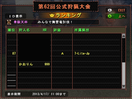 そんなこんなで、アクティブな身内はみんなG級に入ったわけですが。