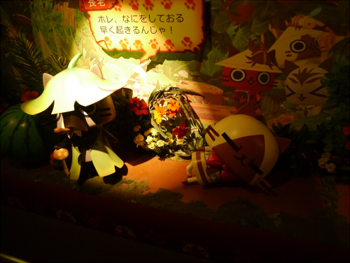 アイルー村での場面を再現してるやつですね。カワイイ。