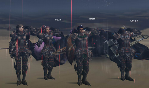 そのときはらいさんとマルタさんがハンマ、私片手、ざびさんが大剣だったです。