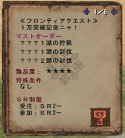 おいしいクエがいまいちないので、SRあげするよりも、HC素材集めがよさそうな気が。