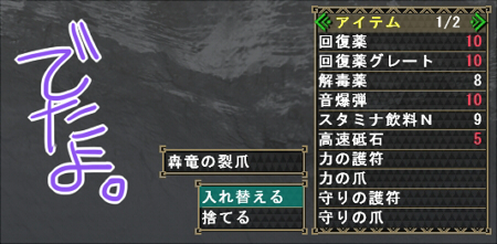 轟竜の裂爪を4つげっと。10回もクエいってないよ・・・たしか・・・。