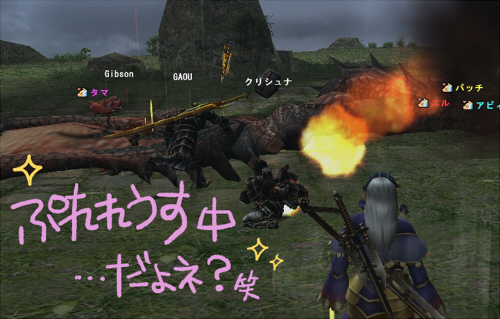 画像とりそびれたんだけども、ガオウさんの投げる音爆をクリシュナさんのハンマーで