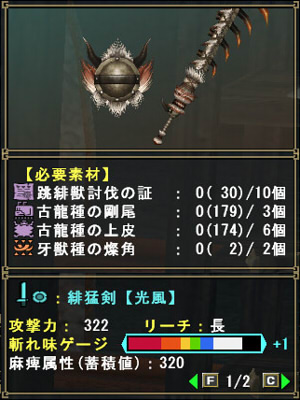 シリーズクエのベテランシリーズをクリアすると太刀が作れました。ほうほう!