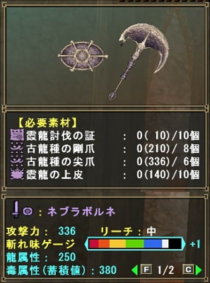 白いのが好みなので、氷属性にしようかな~(今見たら龍属性しかほぼなかった)。